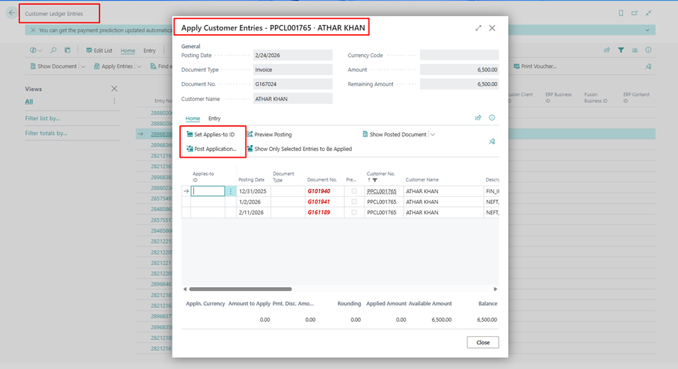 PostAppn.Apply(CustomerLdgEntryInv, ApplyParams);