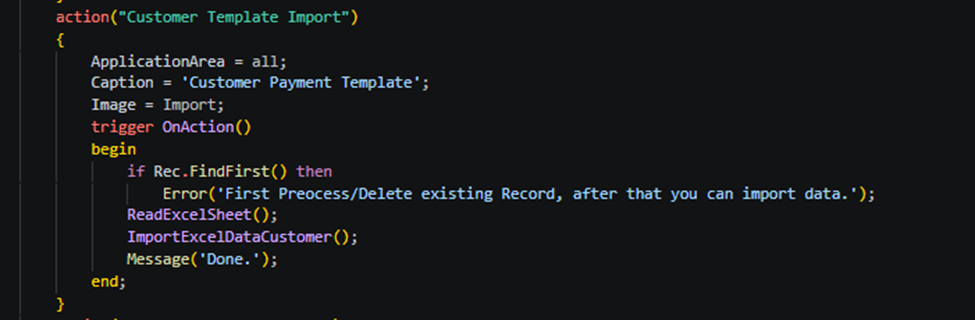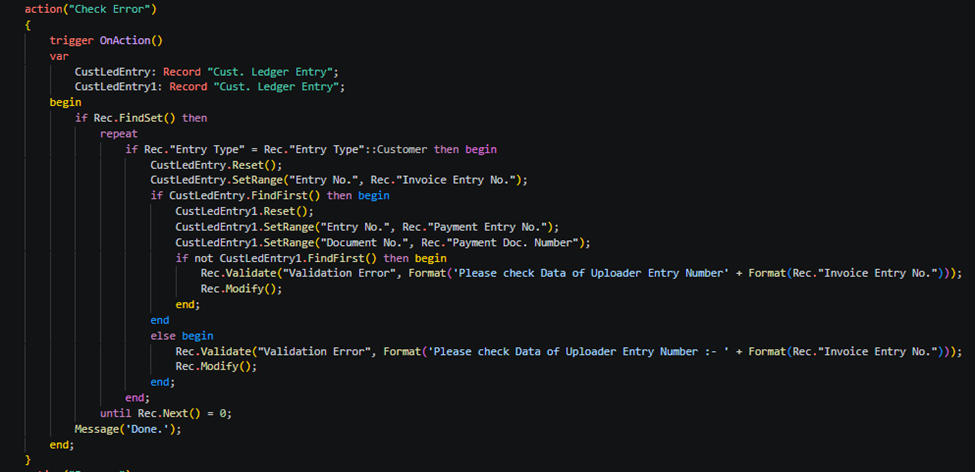 Step – 3. Now create action button to cross verify records of uploaders by customer ledger entry table –