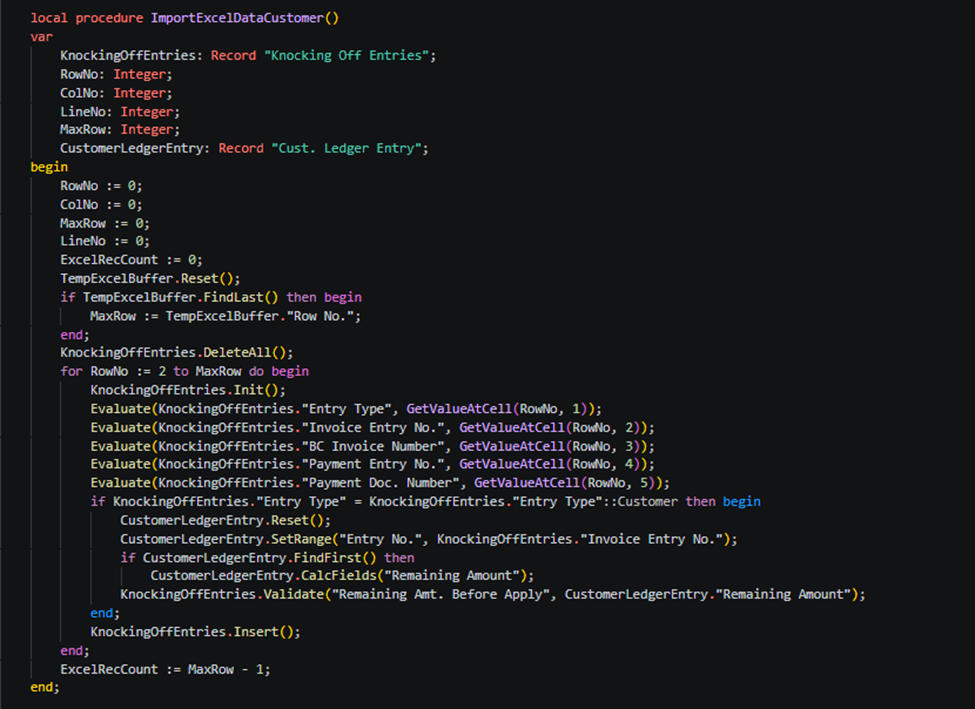 When we work with large volumes of customer invoices and payments, manually applying entries in Business Central can be slow and error‑prone. To solve this, We have built a small “knocking‑off” framework that reads data from an Excel‑based uploader and automatically applies posted sales invoices against posted customer payments.